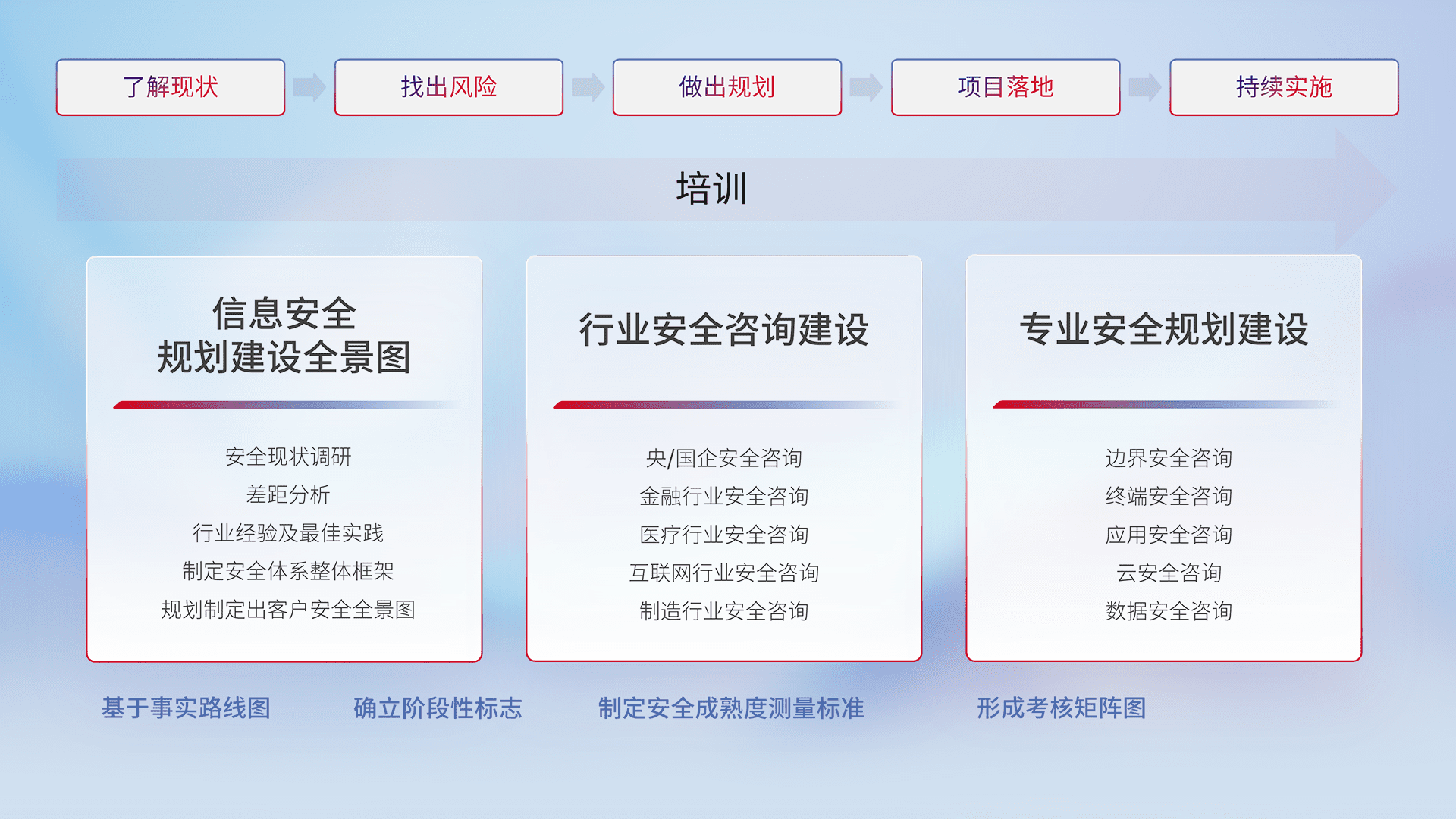 梳理客户信息安全现状调研、、、差距分析结果,,,结合行业先进经验及最佳实践,,制订客户的信息安全管控体系总结架构,,最终形成一个完整的客户信息安全规划与建设的全景图。。